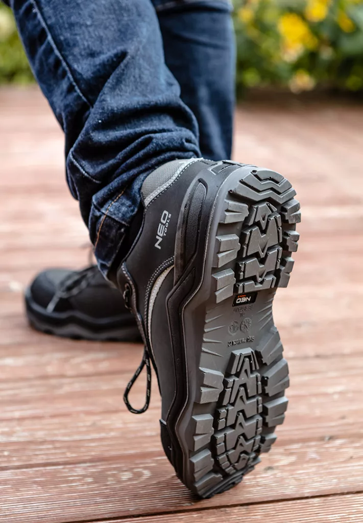 • Kopásnak, olajnak, benzinnek és hígítónak ellenálló két sűrűségű PU anyagból készült cipőtalp (felső része puhább a komfortos járás érdekében, az alsó keményebb rész óvja a cipőtalpat a kopástól)