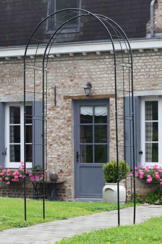 Dupla egyenes lugas fekete epoxi bevonatú horganyzott acélból, melyre könnyen felfuttathatja növényeit.