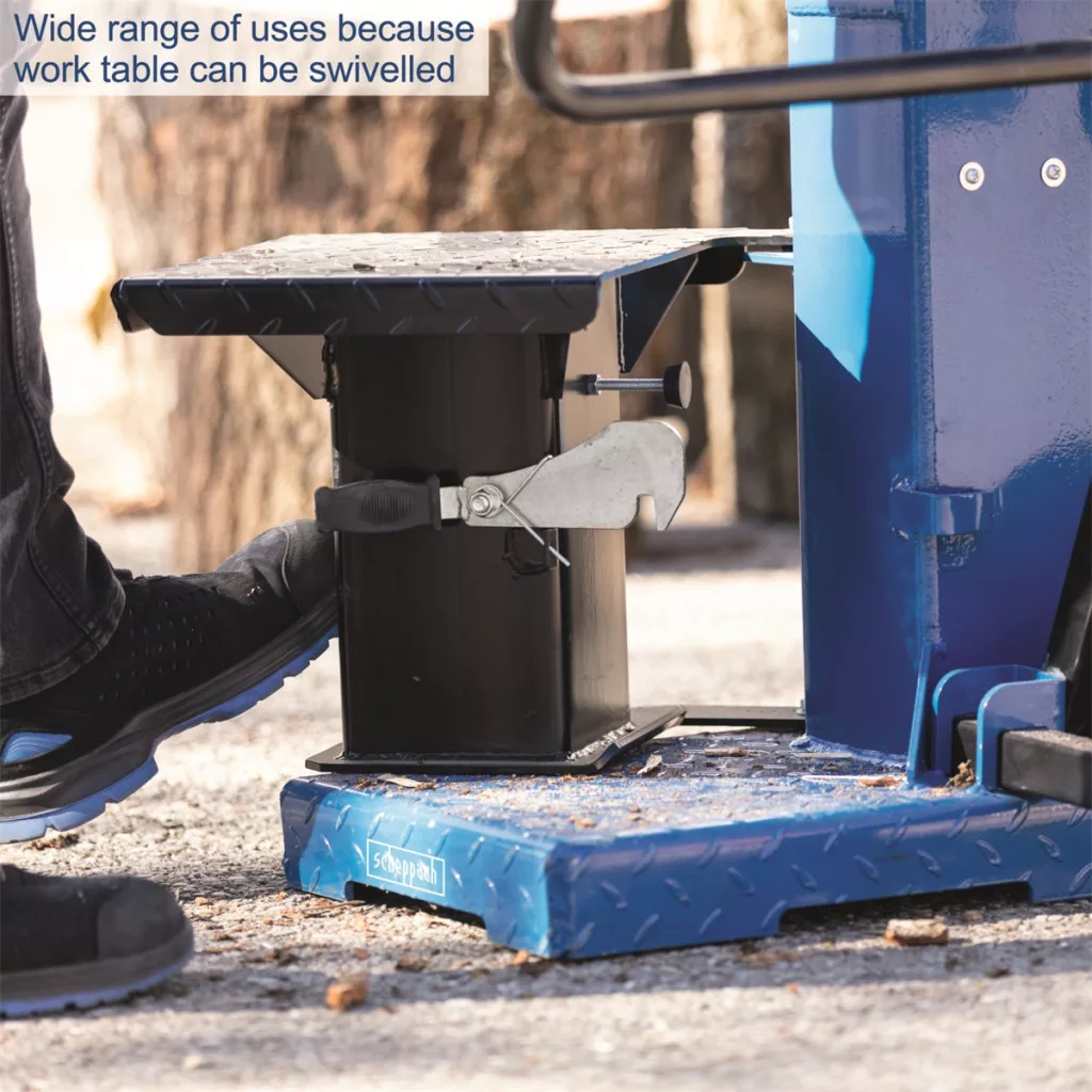 Ipari elektromos rönkhasító, 15 tonnás hasítóerőnek köszönhetően könnyedén elbánik minden fafajtával, legyen az puha- vagy keményfa, számos szabadalmaztatott megoldásnak köszönhetően, megfelel a legújabb EU-s biztonsági szabványoknak.