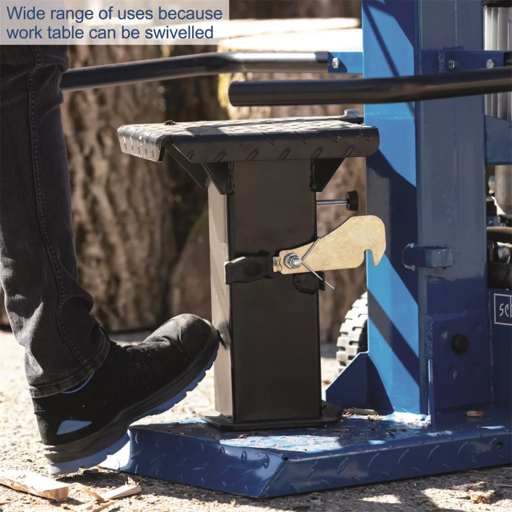 Rönkhasító, 8 tonnás hasítóerőnek köszönhetően könnyedén elbánik minden fafajtával, legyen az puha- vagy keményfa, legmodernebb, szénkefe nélküli villanymotor hajtja, amely sokkal hatékonyabb a hagyományos villanymotoroknál,