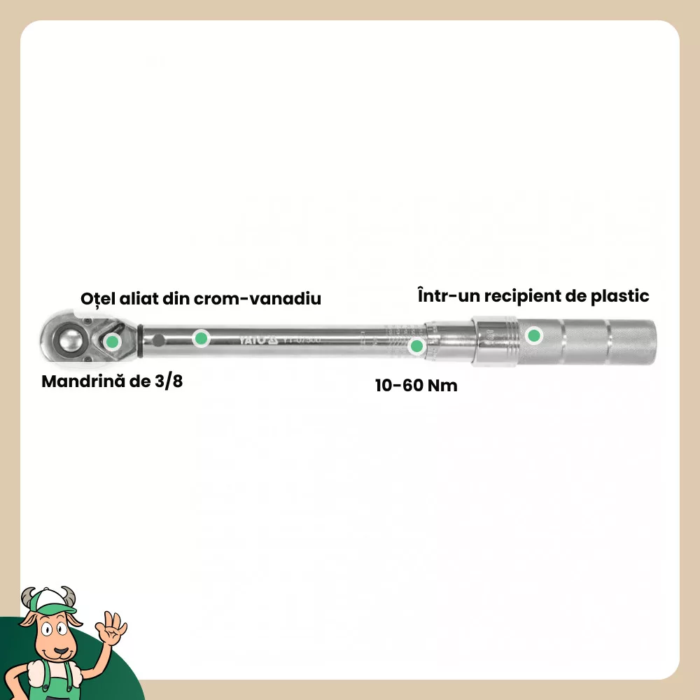 Yato nyomatékkulcs 3/8" 10-60 Nm / 378-400 mm