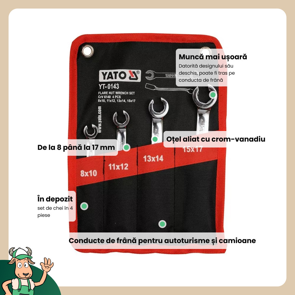 Yato fékcsőkulcs készlet, 8-17 mm, 4 részes