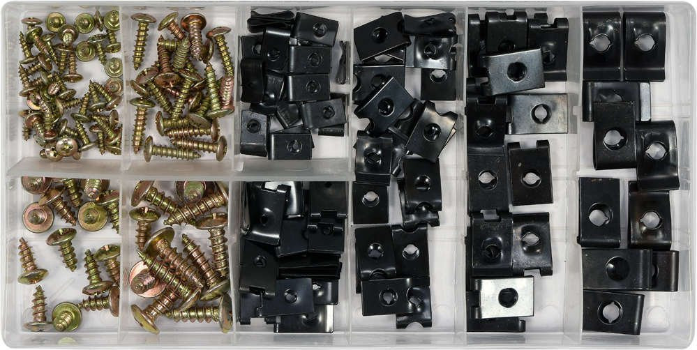 Karosszérria csavar és alátét készlet 170 részes, praktikus tárolóban.