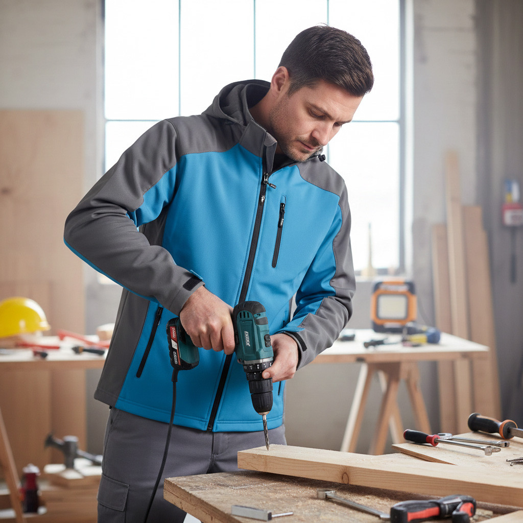 Softshell kabát három zsebbel, vízálló cipzárral és levehető kapucnival.
