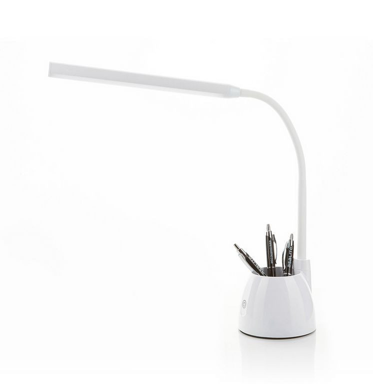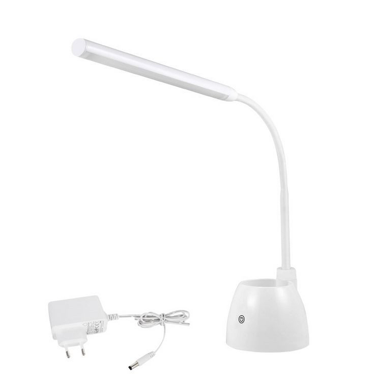 Asalite 6W dimmerelhető LED asztali lámpa, 4000K, 480 lm, 275×115×490 mm, 1,8 m tápkábel, 120° látószög, szilikon hajlítható nyak, 3 fokozatú talpgomb, energiaosztály G, 25 000 óra élettartam, 2 év garancia.