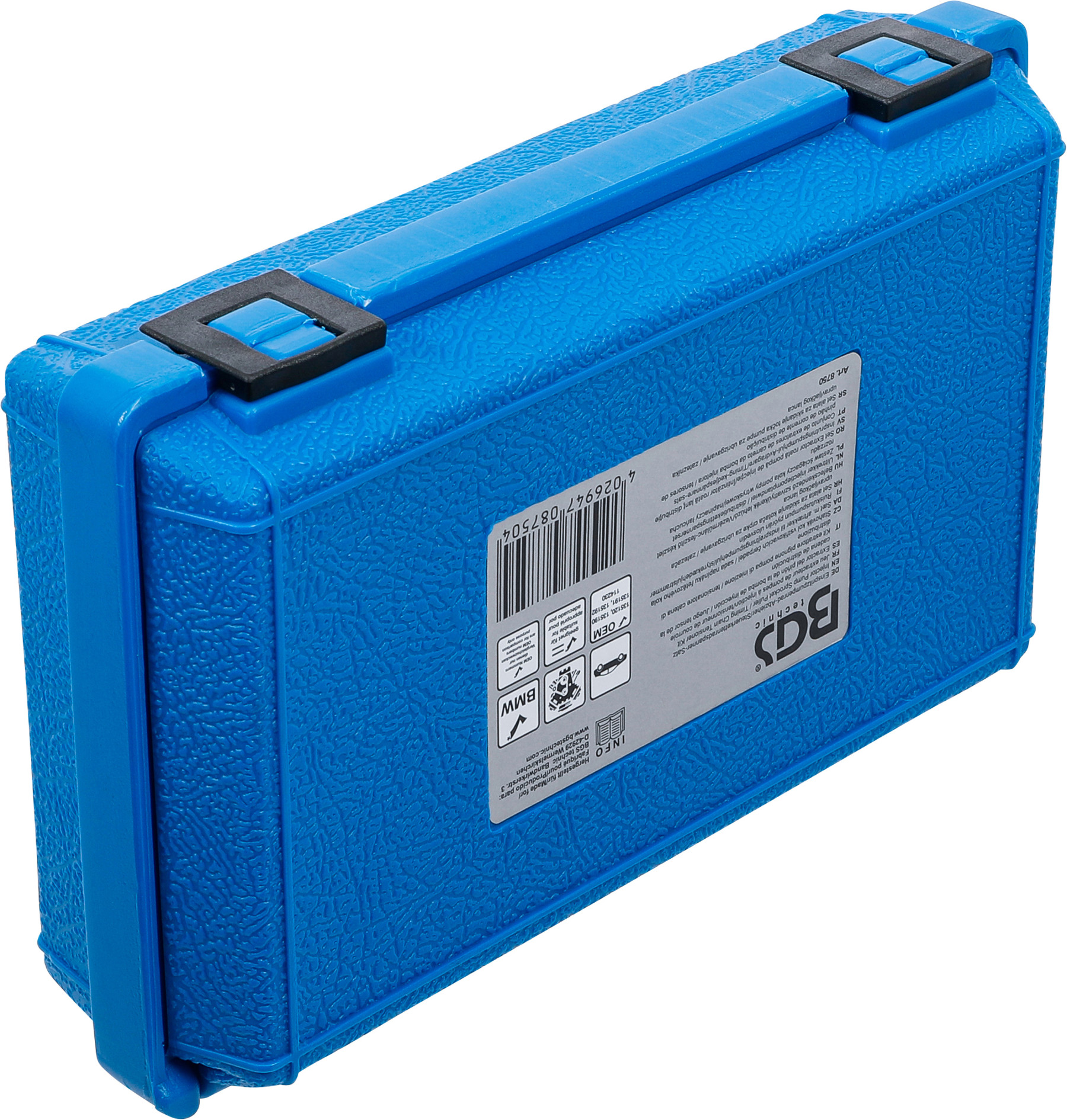 Befecskendező szivattyúkerék lehúzó / vezérműlánc-feszítő készlet BMW, Opel. Lehúzó BMW befecskendező-szivattyúkerék; a dízel befecskendező szivattyúk leszereléséhez szükséges. A készlet tartalmaz lehúzószerszámokat: szivattyú járókerék lenyomása a szivattyútengelyről 4 és 6 hengeres BMW M41, M51 és azonos gyártású Opel/Vauxhall Omega 2,5 TD (M51) motorokhoz; a szivattyúkerék lenyomása a tengelyről és rögzítési pozícióban tartása M47, M47TU, M57, M57TU motorokhoz; vezérműlánc előfeszítéséhez BMW M50, M60, M62 motorokhoz. Úgy kell használni, mint például OEM 135120, 135190, 135191, 135192, 114230.