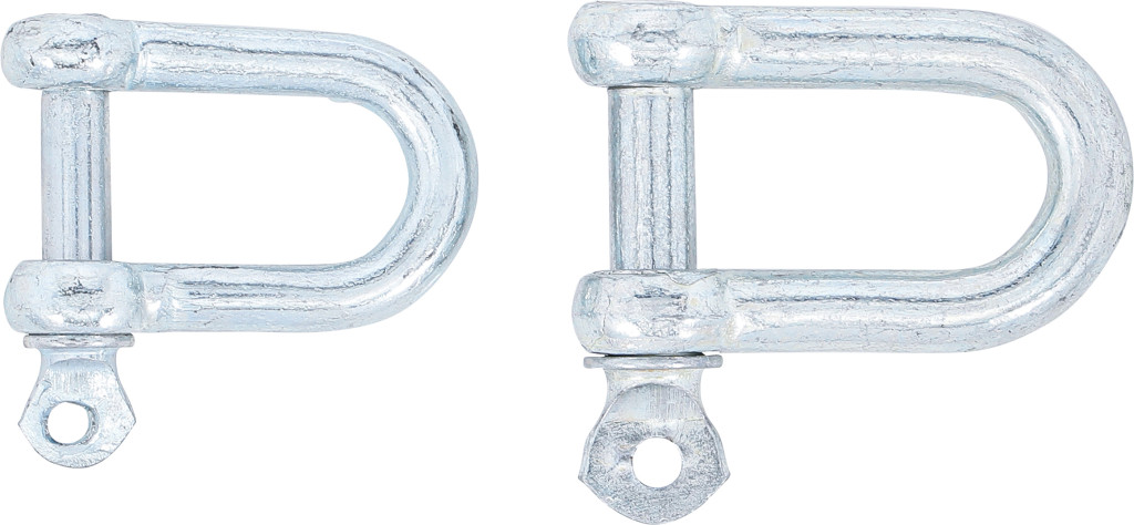 Bilincskészlet D típus, 2 db: egyenes D-bilincs szemescsavarral; méretek 8×31 mm (hossz 50 mm) és 10×37 mm (hossz 62 mm); horganyzott; falikárpithoz alkalmas csomagolás; munkaterhelés max. 150 kg