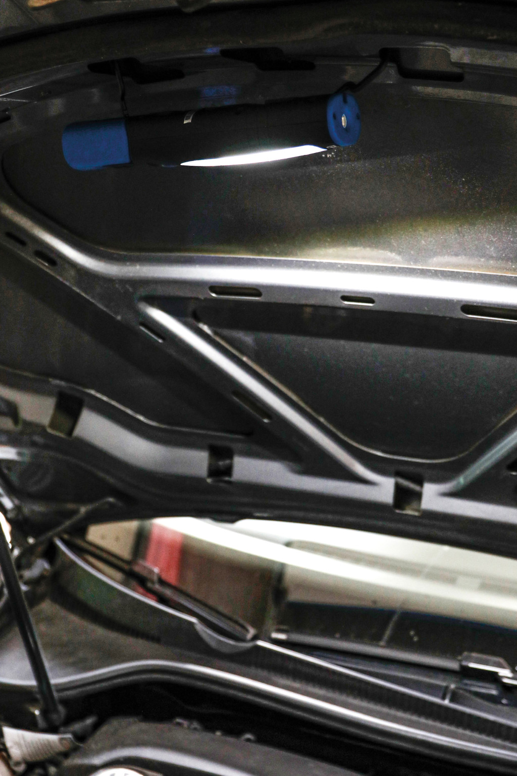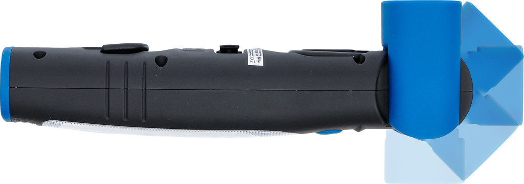 COB LED munkalámpa kampóval és mágnessel: ABS műanyag ház érdesített, gumírozott felülettel. Két kihajtható, 360°-ban elforgatható kampó és 180°-ban állítható, 8 fokozatban rögzíthető fogantyú. Erős mágnes az alján és két mágnes a hátoldalon fémfelületekhez. Főlámpa: COB 400 lm, kb. 3 óra; elülső lámpa: SMD 120 lm, kb. 9 óra. Li‑ion akkumulátor 3,7 V, 2800 mAh; töltési idő 3,5 h, USB-C bemenet. Töltésvezérlés-kijelző (piros/zöld). IP54, működési hőmérséklet -10–40 °C. Méretek: 254×55×45 mm.