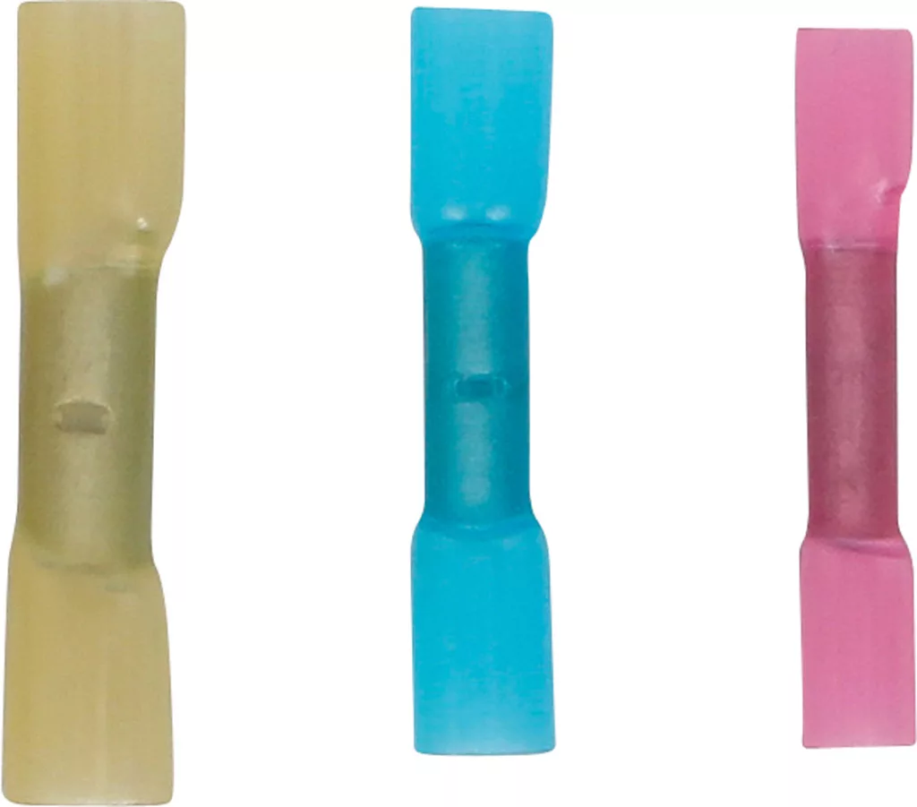 Forrasztható összekötő készlet zsugorhüvellyel, 36 darabos. Átlátszó zsugorcső színes forrasztóón gyűrűvel; egyidejű forrasztás és hőre zsugorodás forró levegővel, a forraszanyag így köti össze a kábelvégeket. Nagy szakítószilárdság és nyúlásállóság. Hőmérsékleti tartomány: -55…+125 °C. Érintésvédelmi osztály: IP67. Praktikus készletdoboz. Szállítási terjedelem: 18× piros (bel. Ø5,0 mm × kül. Ø6,0 mm × hossz 38 mm), 12× kék (bel. Ø6,0 mm × kül. Ø7,0 mm × hossz 38 mm), 6× sárga (bel. Ø7,0 mm × kül. Ø8,0 mm × hossz 42 mm). Az autóiparban, a vasúti és vízi járművekben, a repülőgépiparban, valamint a villamosenergia- és elektronikai iparban való felhasználásra.