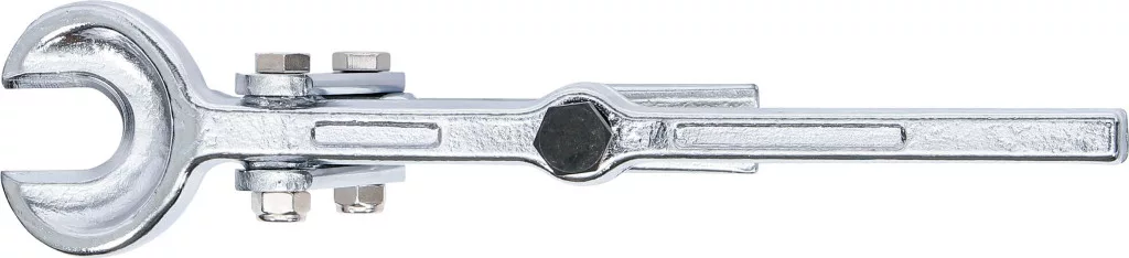 Gömbcsukló-kinyomó extra nagy haszongépjárművekhez. Kovácsolt kivitel, NFZ, univerzálisan használható. Műszaki jellemzők: kampós talp nyílása 20 mm, talp vastagsága a csúcson 10,5 mm, talp mélysége 29 mm, kampó hossza 54 mm. Teljes hossz 270 mm, orsó hossza 75 mm, befogási mélység 10–40 mm, hatszögletű működtetőelem 16 mm.