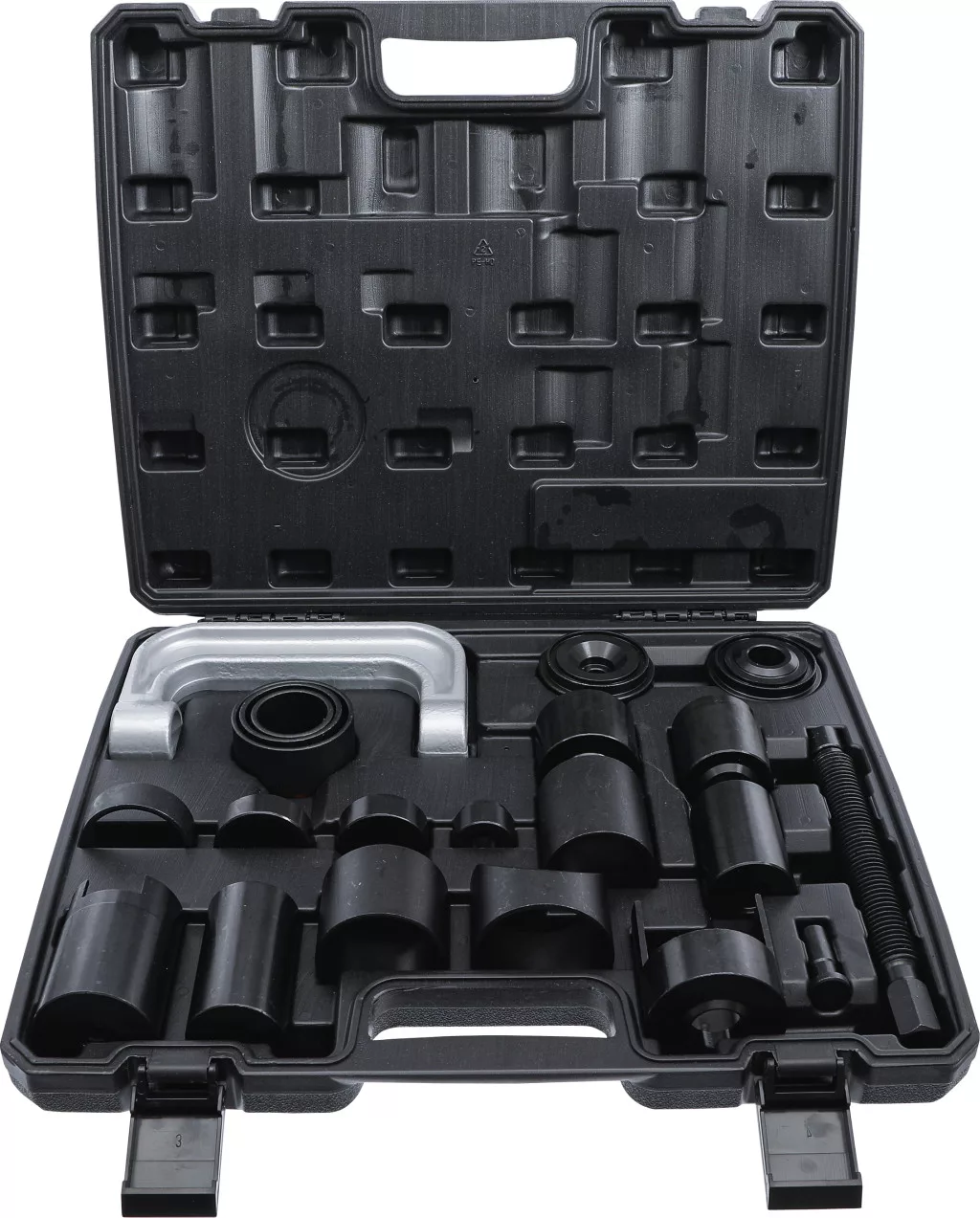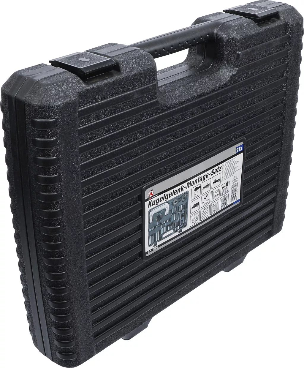 Gömbcsukló-szerelő készlet, 21 darabos. Nehéz kialakítás, 152 mm-es nyomóvillanyílás. A készlet tartalmazza az összes szükséges hüvelyt és nyomóelemet a legtöbb amerikai jármű (pl. GM, Ford, Dodge) 2WD és 4WD pickupjainak gömbcsukló-cseréjéhez 1997-ig, és számos európai transzporterhez és SUV-hoz is használható. Szállítási terjedelem: 230 mm nyomóorsó, nyomóorsókar, nyomócsapok 6,4/19 mm, befogóhüvelyek 44,5×50,8; 57,2×63,5; 69,9×76,2; 57,2; 44,5; 36,5; 69,9 mm; befogóhüvely-adapter 50,8 mm; befogócsészék 50,8; 66,7; 31,8; 44,5 mm; szerelőcsésze 44,5 mm.