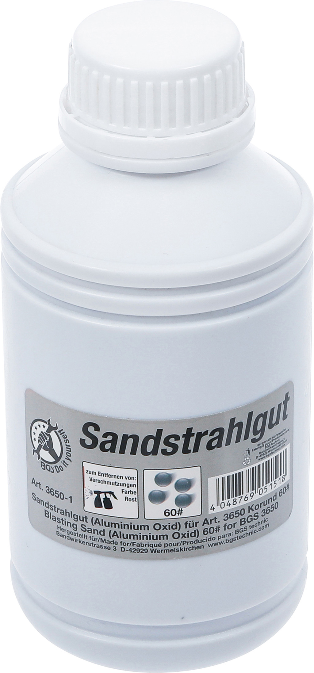 Homokfúvó anyag, alumínium-oxid (korund) 60# — festék és rozsda eltávolítására; használható levegős homokfúvó pisztollyal BGS 3650.