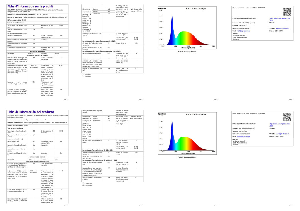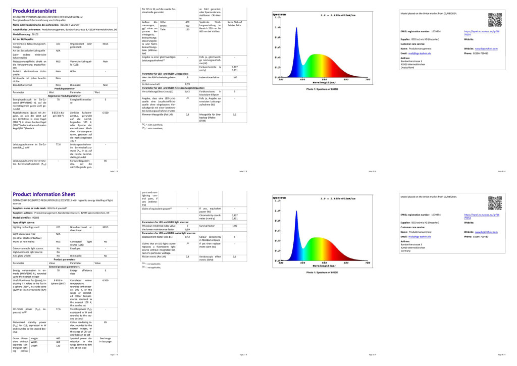 78 W-os LED-es lámpa E26/E27 foglalathoz, 85–265 V tápellátással. 324 db (2835) LED, >50 000 óra élettartam, max. 8600 lm, 6000–6500 K, CRI >80, fényszög akár 360°. Négy összecsukható főreflektor (mindegyik 2 állítható szegmens), plusz 1 rögzített középső reflektor; 10 egyénileg állítható szegmens, szegmensek 90°-ig dönthetők. Egyszerű beszerelés E26/E27 foglalatba, nincs szükség további kábelezésre. Méretek: min. 160×160×132 mm, max. 435×150×132 mm. Üzemi hőmérséklet: -10–85 °C; tárolás: > -20 °C.