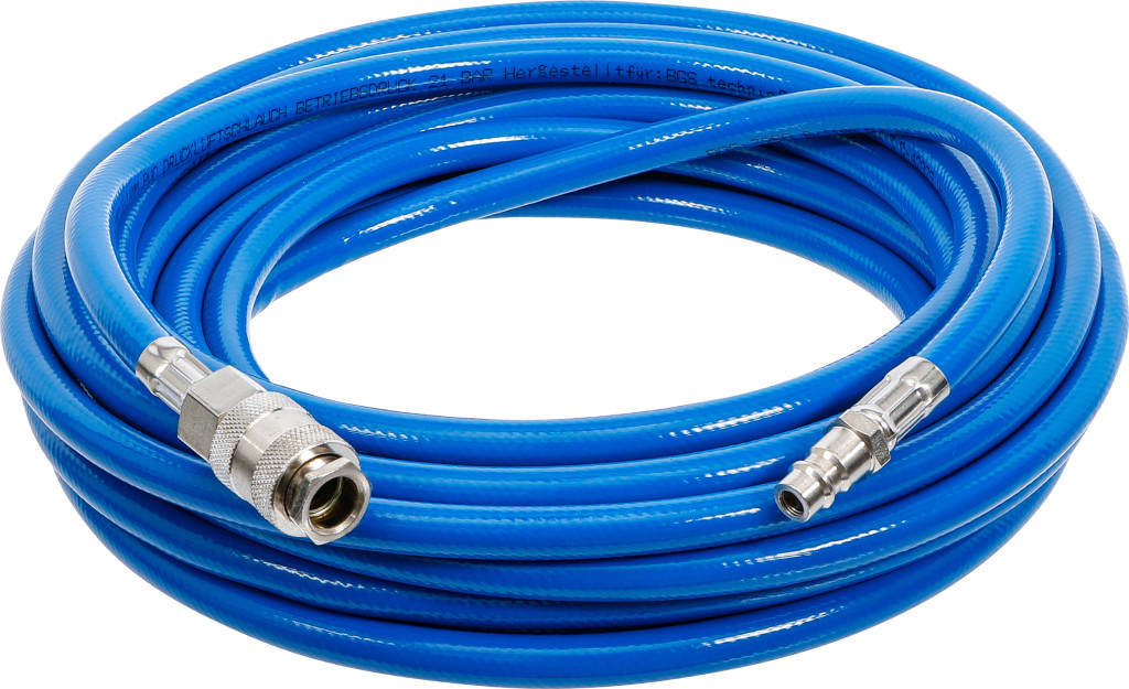 Levegőtömlő 10 m — PVC szövet, belső átmérő 6 mm, üzemi nyomás 20 bar, sűrítettlevegő-csatlakozó 1/4".