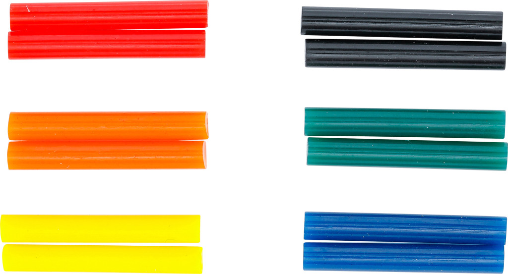 Melegenragasztó-patronok vegyes színű Ø7,5×50 mm, 12 db. Csomagolás falikárpithoz alkalmas. Illeszkedik BGS 80845 ragasztópisztolyhoz. Tartalom: 2×(piros,narancs,zöld,sárga,fekete,kék).