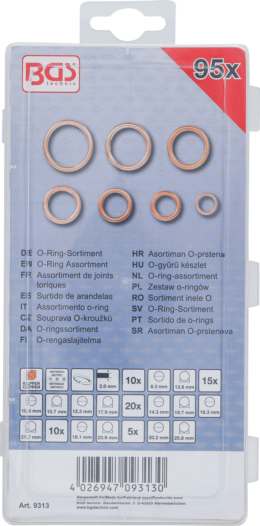 BGS o-gyűrű készlet Vörösréz Ø 6 - 20 mm 95 darabos