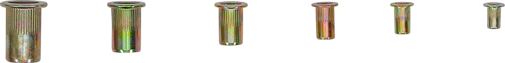 Szegecsanya készlet horganyzott acél 150 darabos. Anyaga acél, felülete horganyzott. Praktikus, újra felhasználható univerzális dobozban kerül forgalomba; csomagolása falikárpithoz alkalmas. A csomag tartalma: 40× M3×9 mm, 35× M4×11 mm, 25× M5×13 mm, 25× M6×15 mm, 15× M8×18 mm és 10× M10×21 mm.