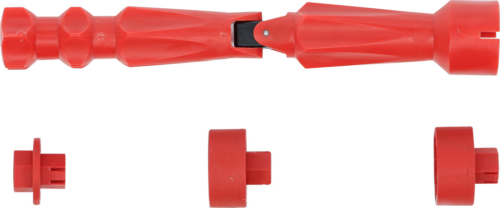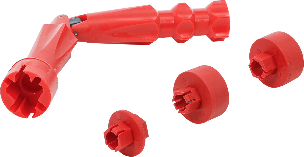 Szerelőkulcs-készlet WC ülőke, 4 db. Higiénikus, könnyen használható; 6–10 mm menetes rúdhoz; sarokszelep nyitásához és elzárásához; speciális csukló, három adapter; hossz 200 mm.