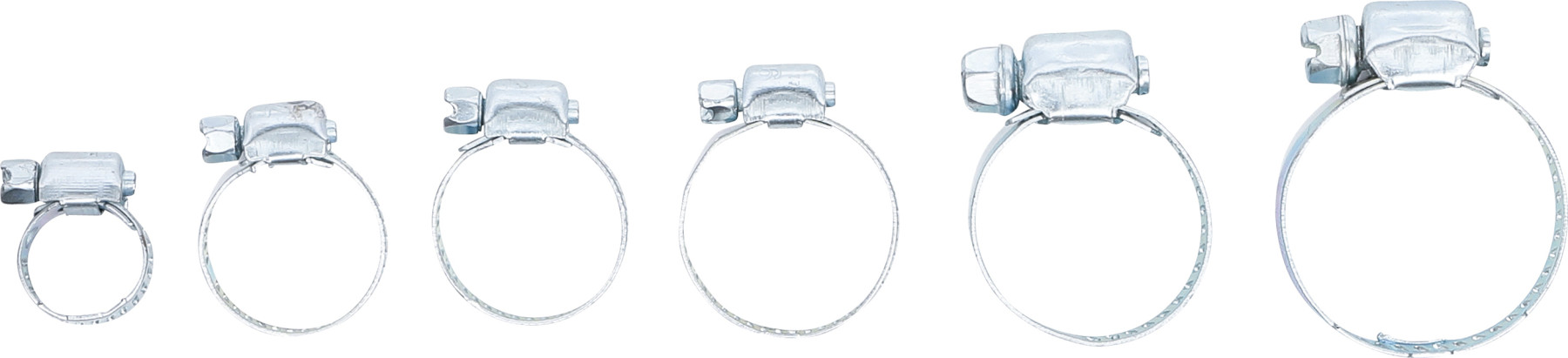 25 darabos tömlőbilincs-készlet szortimentdobozban, falra akasztható csomagolásban: 8ר16, 6ר22, 4ר25, 2ר28, 2ר35, 3ר40 mm.