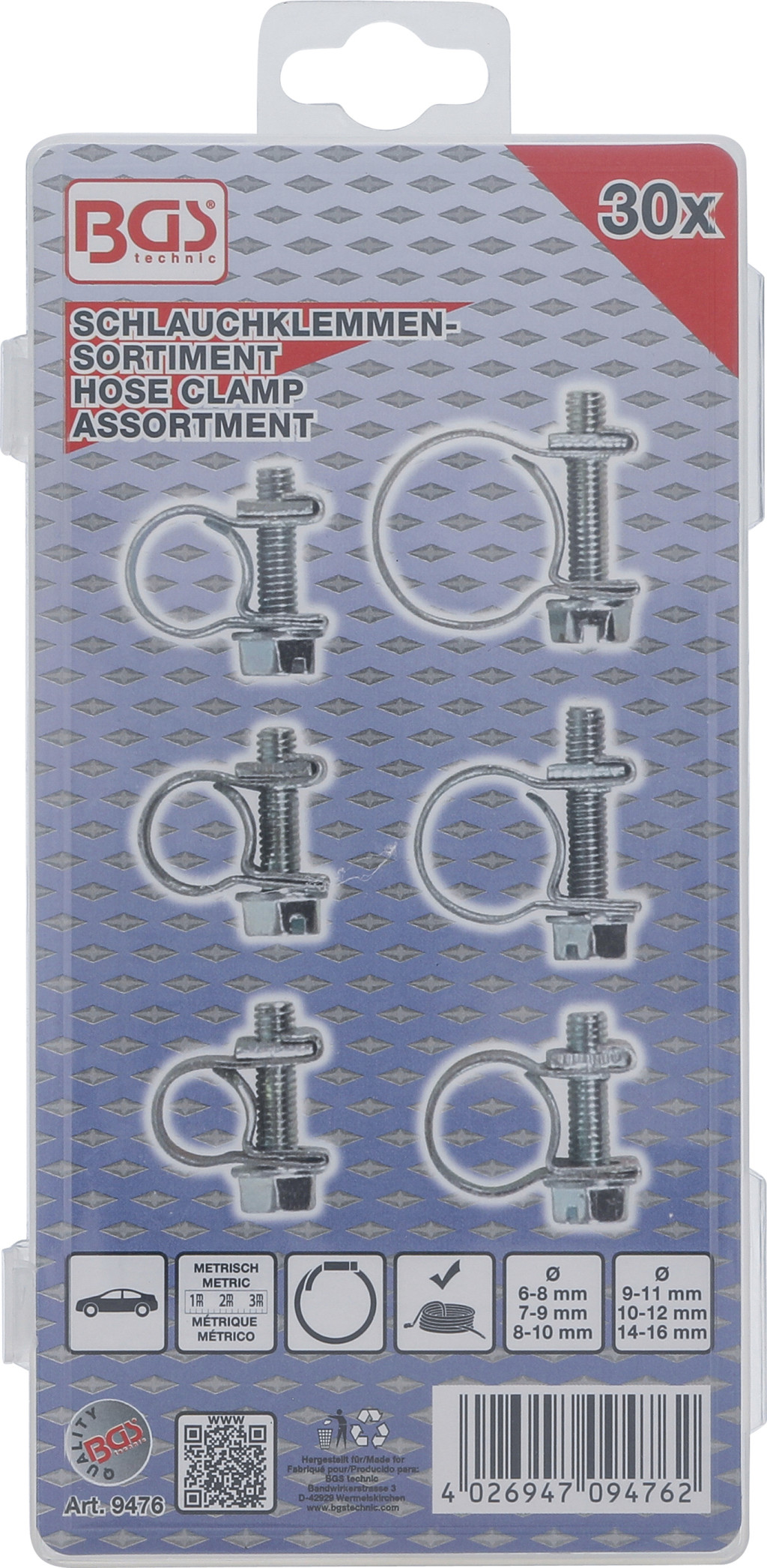 BGS tömlőbilincs-készlet Ø 6 - 16 mm 30 darabos