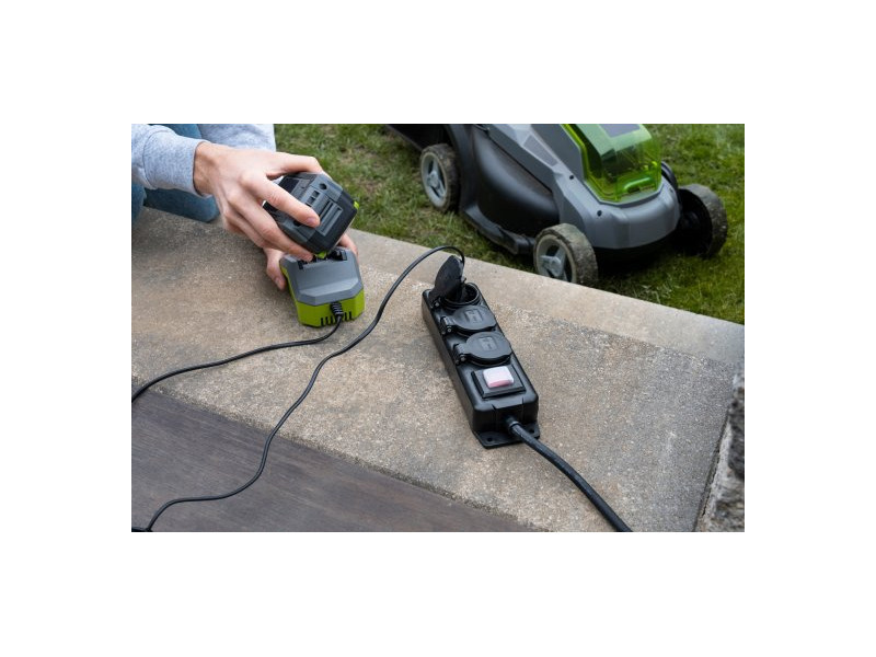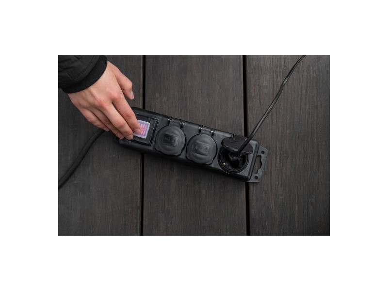 Kültéri 3-as elosztó IP44 védelemmel, 2 m hosszú neoprén kábellel, és három 230 V-os aljzatot kínál fokozott érintkezési védelemmel és önzáró fedéllel. A praktikus 45°-os elrendezés, világítós kapcsoló, valamint a csavarfuRatokkal ellátott akasztó vagy rögzítőkengyel biztosítja a kényelmes használatot és rögzítést.