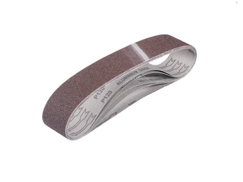 5 darabos csiszolószalag-készlet különböző szemcseméretekkel. Fa és fém hatékony megmunkálásához. Csiszolószalag szemcseméretek: 2xP60, 2xP80, 1xP120, Méretek: 50x686 mm