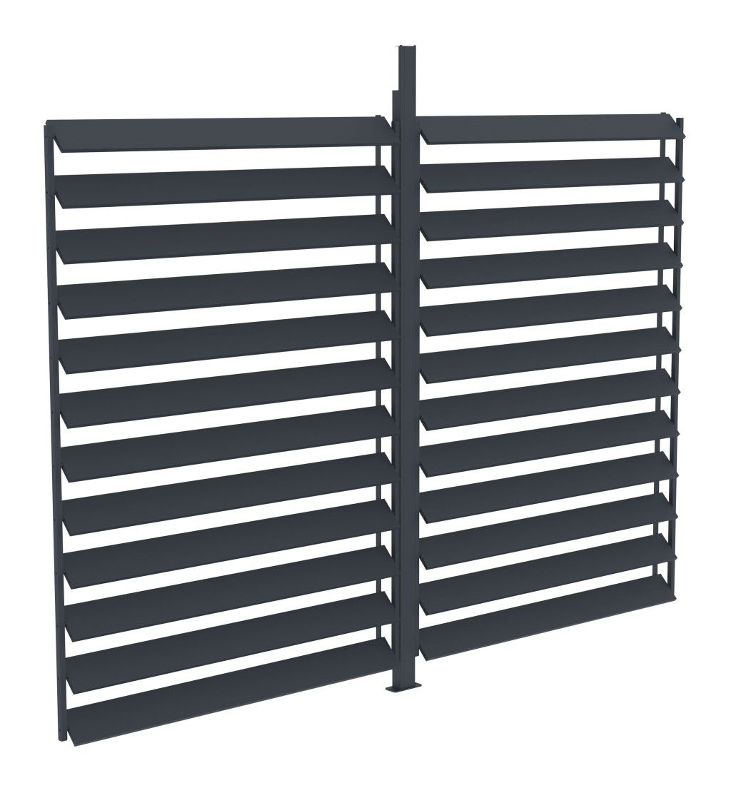 Forgatható oldalfal horganyzott lamellákkal a jobb védelem érdekében szél, eső és nap ellen. Stabil alumínium szerkezet, könnyű telepítés.