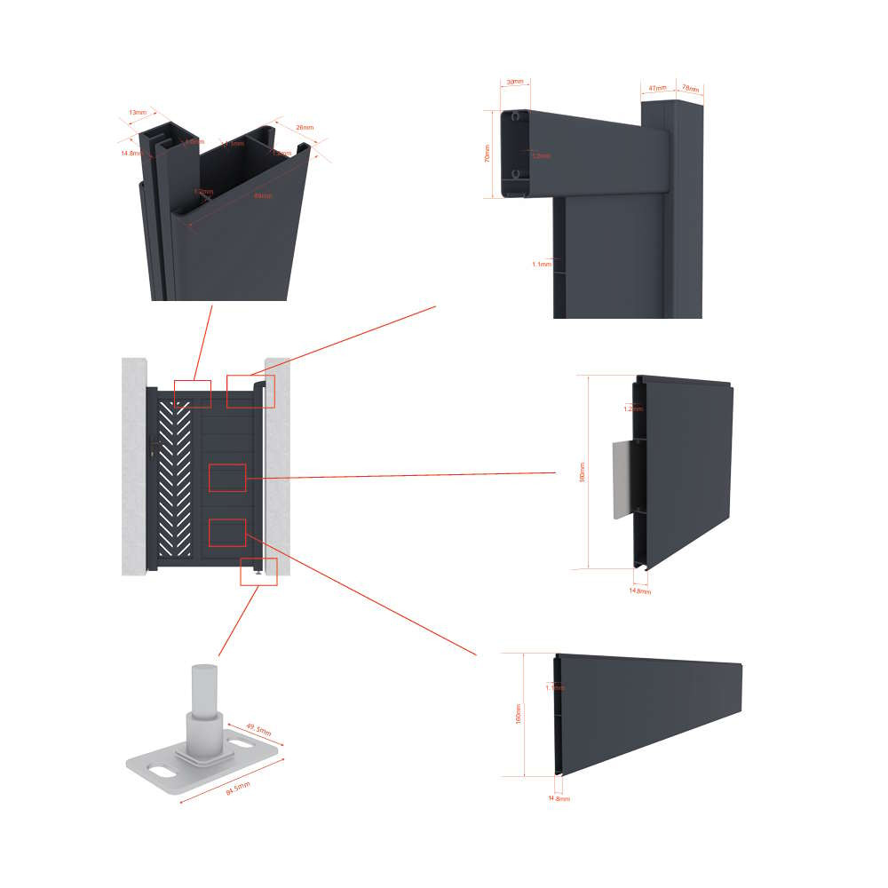 Marion 100x158 cm jobbra nyíló kapu, antracit