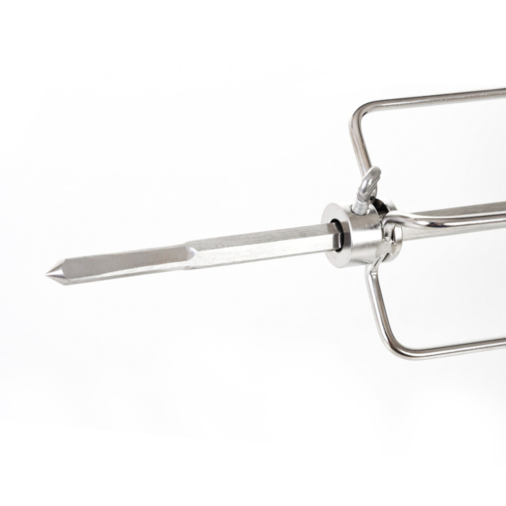 A motoros grillnyárs a Florida BBQ Premium line gázgrill fontos tartozéka. Rozsdamentes acélból készült, mindkét oldalán négy tűvel és rögzítő csavarokkal van ellátva, amelyek lehetővé teszik a tűk igény szerinti beállítását.