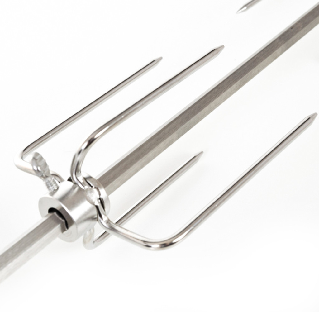 A motoros grillnyárs a Nevada BBQ Premium line gázgrill fontos tartozéka. Rozsdamentes acélból készült, mindkét oldalán négy tűvel és rögzítő csavarokkal van ellátva, amelyek lehetővé teszik a tűk igény szerinti beállítását.