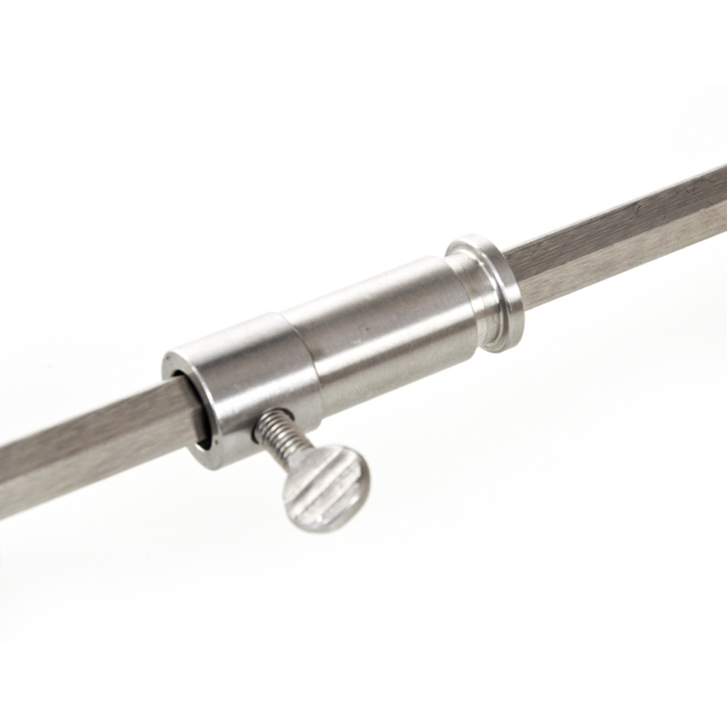 A nyárstű két rögzítő rozsdamentes acél lapot és csavarokat tartalmaz.