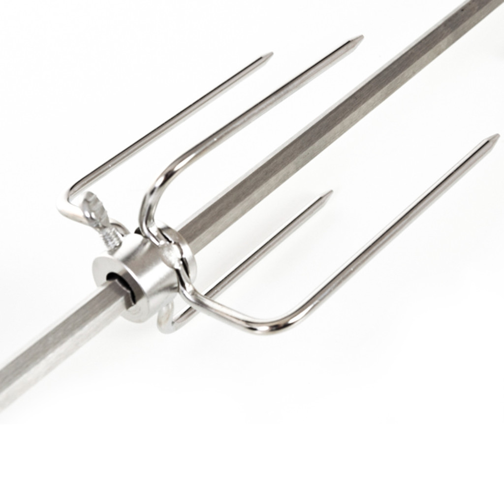 A motoros grillnyárs a Arizona BBQ Premium line gázgrill fontos tartozéka. Rozsdamentes acélból készült, mindkét oldalán négy tűvel és rögzítő csavarokkal van ellátva, amelyek lehetővé teszik a tűk igény szerinti beállítását.