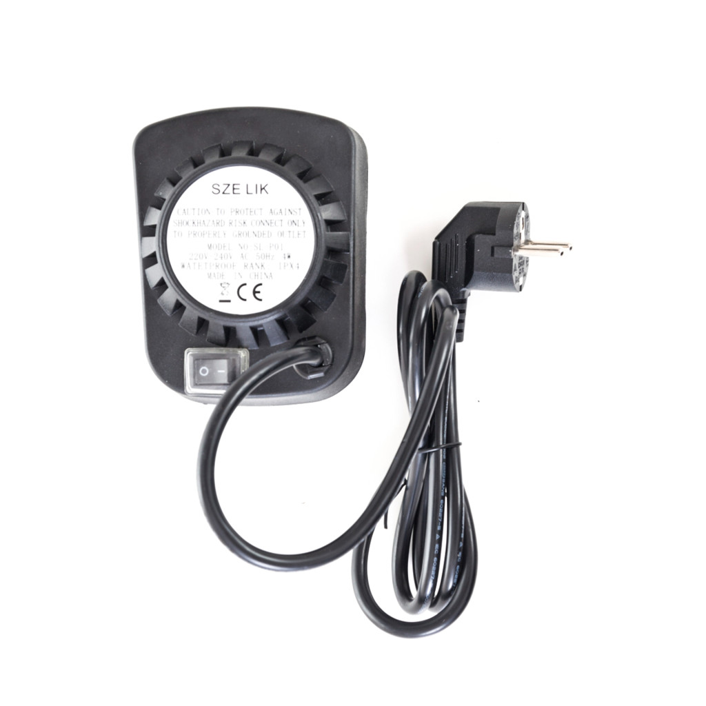 Az egyik oldalon levehető műanyag tartó található, amelyen egy praktikus szem van a rögzítéshez. A másik oldalon a műanyag tokban elhelyezett motor található, amelyen a ki- és bekapcsolás gombja van. A 230 V teljesítményű motort egyszerűen csatlakoztathatja az áramkörre a kb. 125 cm hosszú kábel segítségével. A motoros nyárs gyorsasága 2 fordulat/perc, ami biztosítja, hogy az étel egyenletesen süljön és ne égjen le.