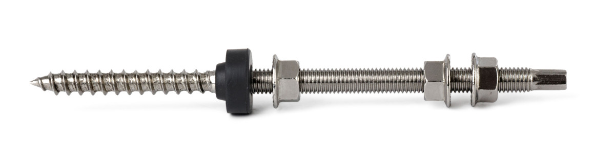 Kombinált csavar, menetméret: M10 x 250 mm, alkalmas rögzítőprofilok hullámos tetőhöz való rögzítésére, rozsdamentes acél.