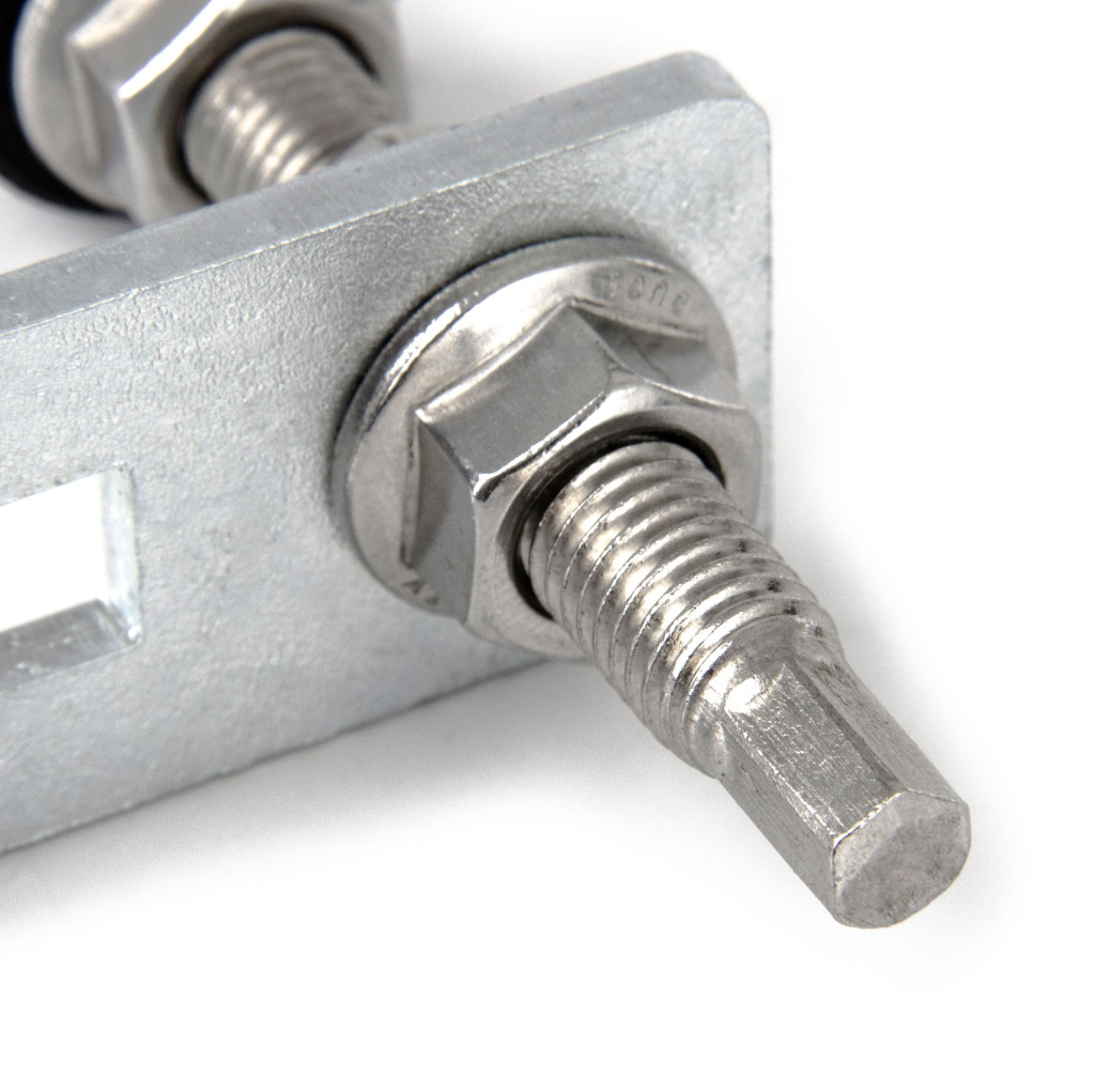 A tőcsavaros tetőkampó M10 menettel a szerelősínek rögzítésére alkalmas hullámos tetőre. Erős és biztonságos rögzítést biztosít.
