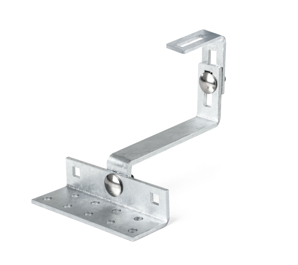 A állítható tetőkampó megkönnyíti a szerelősínek rögzítését betoncserépre. Megvásárolható 20 db-os dobozban.