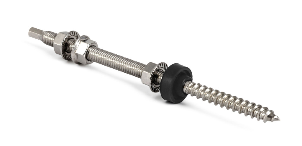 A tőcsavaros tetőkampó M10 menettel a szerelősínek rögzítésére szolgál hullámos tetőre. Biztosítja a merev és biztonságos rögzítést.