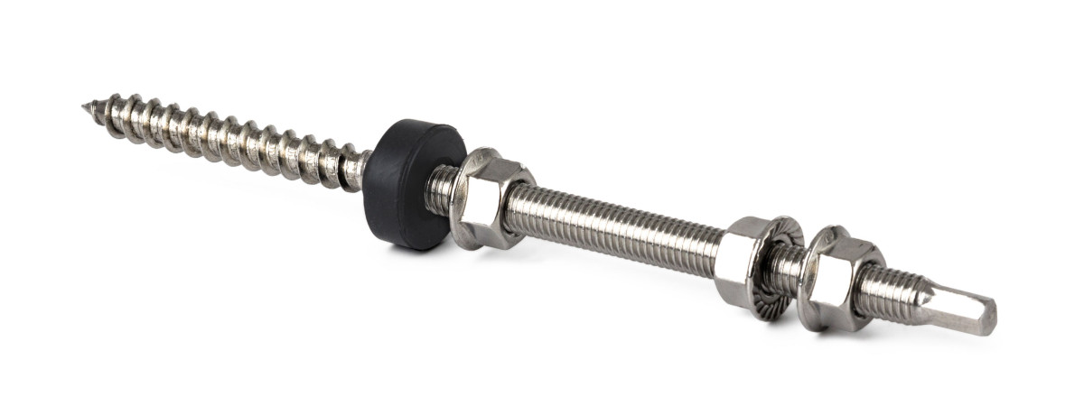 A tőcsavaros tetőkampó M10 menettel a szerelősínek rögzítésére szolgál hullámos tetőre. Biztosítja a merev és biztonságos rögzítést.