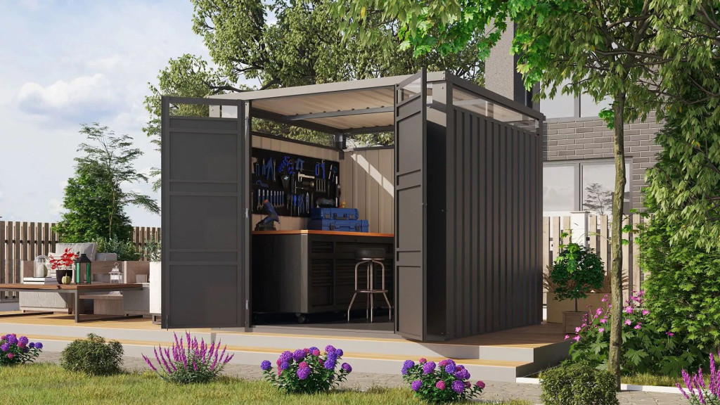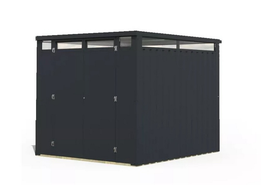 Porszórt trapézlemezből és robusztus horganyzott acél négyzetcsöves keretből készült kerti fészereink tartósságot és időjárás elleni védelmet nyújtanak. A gondosan felvitt porfestékkel ellátott trapézlemez nemcsak esztétikai megjelenést kölcsönöz, hanem tartósságot és megbízhatóságot is biztosít.