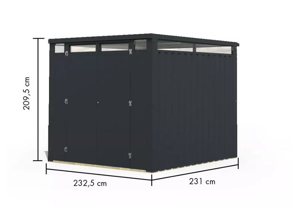 Fém kerti ház, sz 232 x h 231 x ma 210 cm, antracit színű