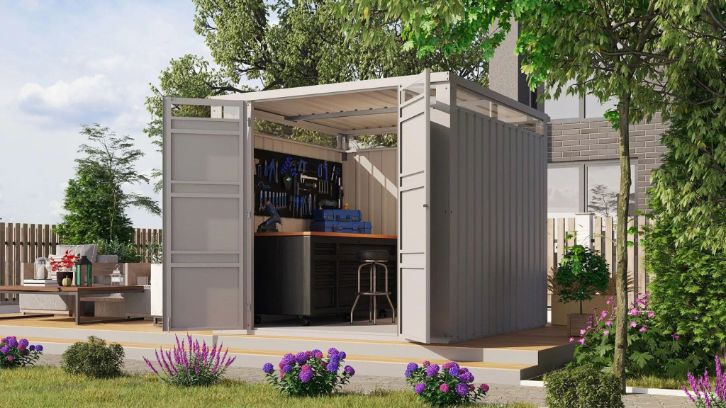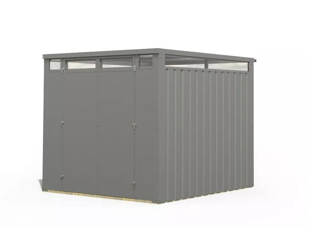 Porszórt trapézlemezből és robusztus horganyzott acél négyzetcsöves keretből készült kerti fészereink tartósságot és időjárás elleni védelmet nyújtanak. A gondosan felvitt porfestékkel ellátott trapézlemez nemcsak esztétikai megjelenést kölcsönöz, hanem tartósságot és megbízhatóságot is biztosít.
