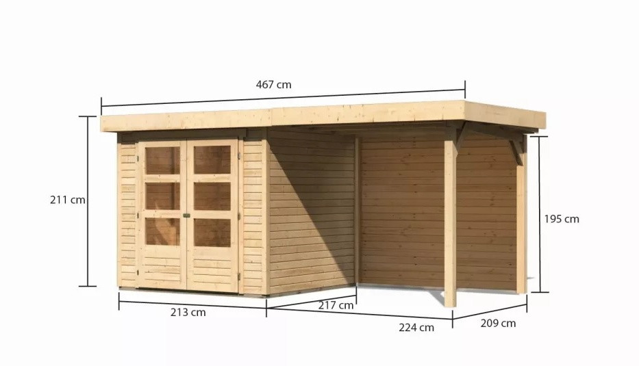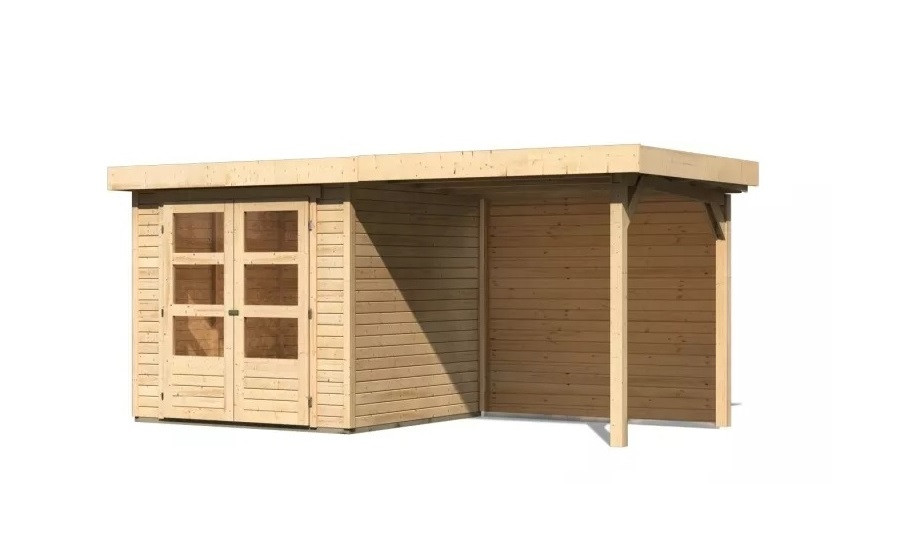Karibu fából készült kerti ház Askola 2 + egy menedéket 240 cm beleértve a hátsó falat is (9164)