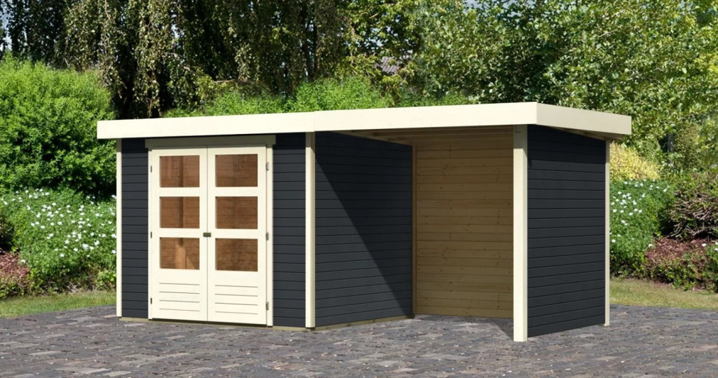 Karibu fából készült kerti ház Askola 3 + egy menedéket 240 cm (38664) antracit