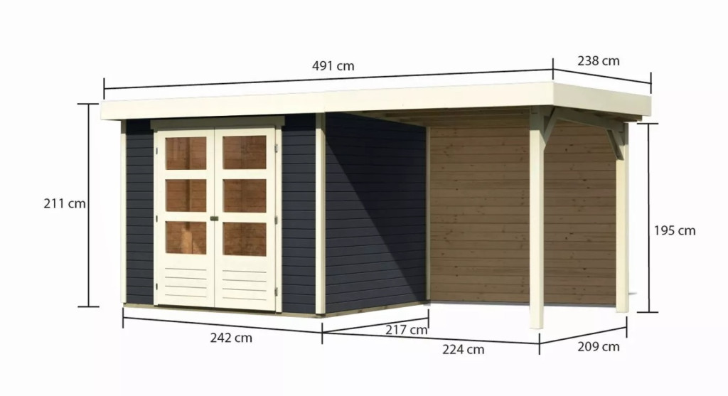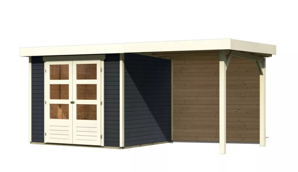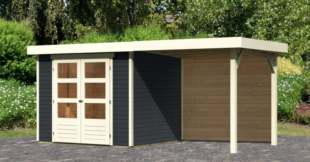 Karibu fából készült kerti ház Askola 3 + egy menedéket 240 cm beleértve a hátsó falat is (38663) antracit
