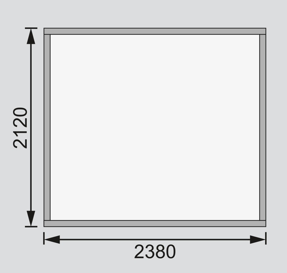 Faház, falvastagság 19 mm, külső méretek sz 242 x mé 217 cm, terület 5,25 m2.