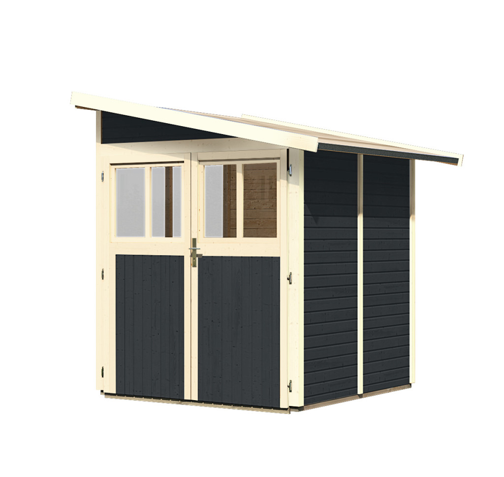 A házban kerti felszereléseket, szerszámokat tárolhat, vagy barkácsműhelyt építhet. A ház ferde tetővel és egy dupla zsanéros ajtóval rendelkezik, mindkét szárnyban ablakkal. A ház építőanyaga 19 mm vastagságú, északi lucfenyőből tökéletesen mart faprofil. Bontott állapotban készletben szállítjuk, ahol a falak egyedi faprofilokból állnak, amelyeket egyszerűen össze kell rakni és összecsavarozni, a tető egyetlen deszkából.