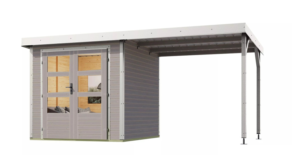 A kertes ház ezen változata egy 240 cm hosszú nyitott bővítményt tartalmaz.