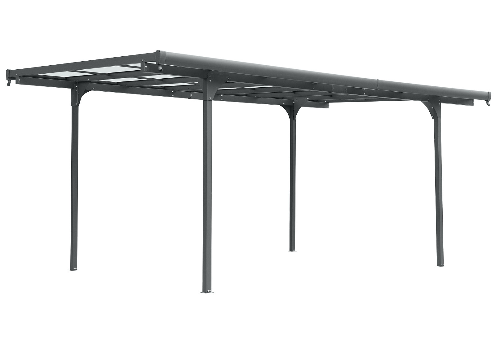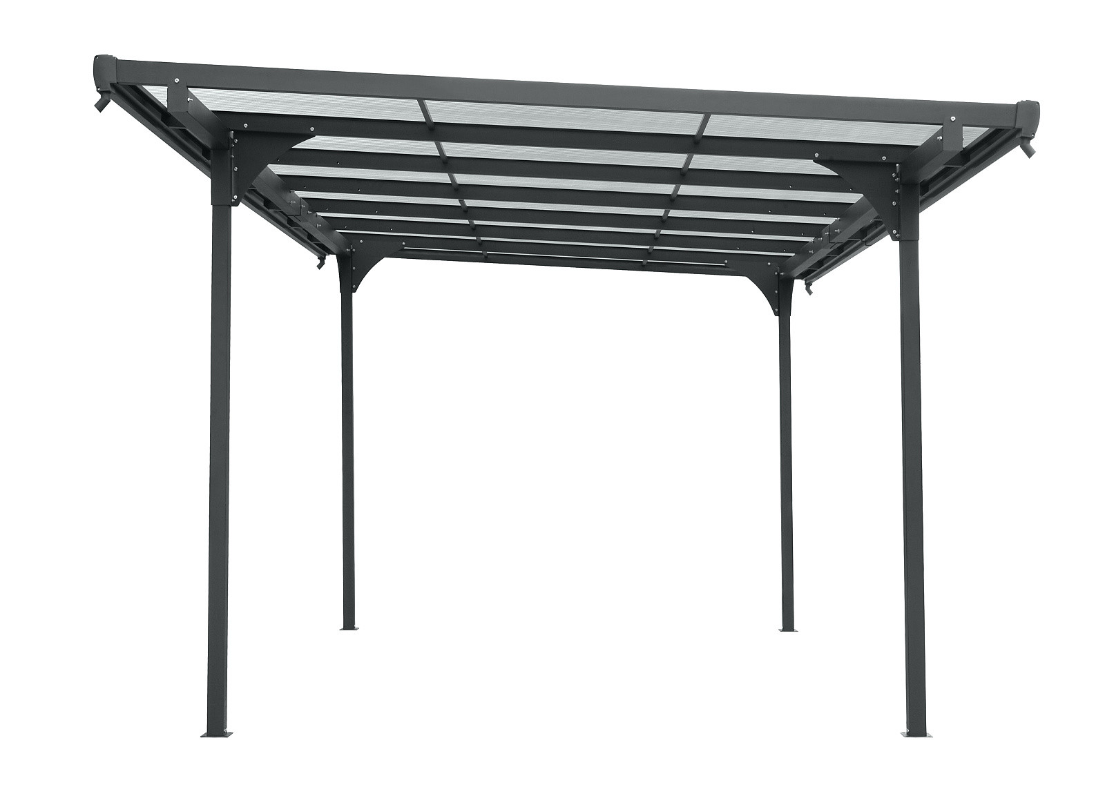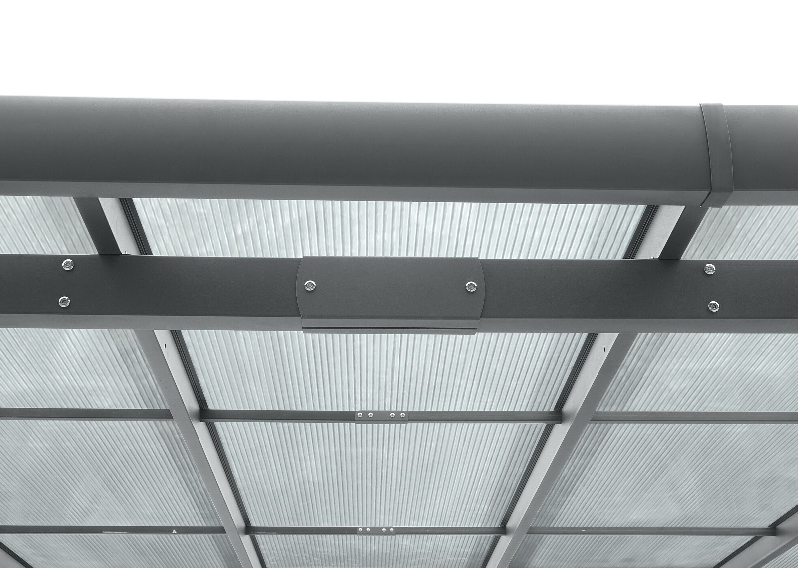 Kerti alumínium pergola polikarbonát tetővel. A pergola konstrukciója strapabíró alumíniumötvözetből készül, amelyet por égetett festékkel (komaxit) szórtak, így tartósan ellenáll a természetes éghajlati hatásoknak. A tető polikarbonát duplafalú lemezekből készül, 6 mm vastagságban, melyeket 3 árnyalatban szállítunk - átlátszó vagy tejfehér áttetsző (ún. OPAL) vagy füstbarna (BRONZ) színben. A maximális minőség biztosítása érdekében építőanyagként kiváló minőségű MARLON polikarbonátot (gyártó: Brett Martin, Nagy-Britannia) használnak, amely a csehországi államilag akkreditált vizsgálólaboratóriumokban szigorú vizsgálatokon esett át.