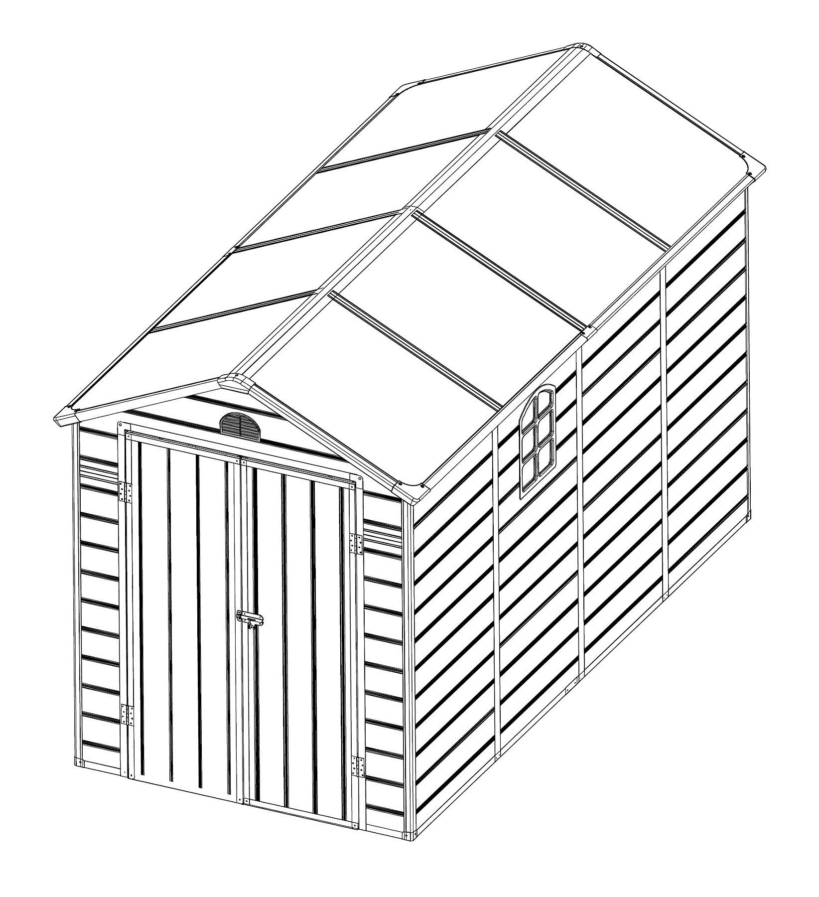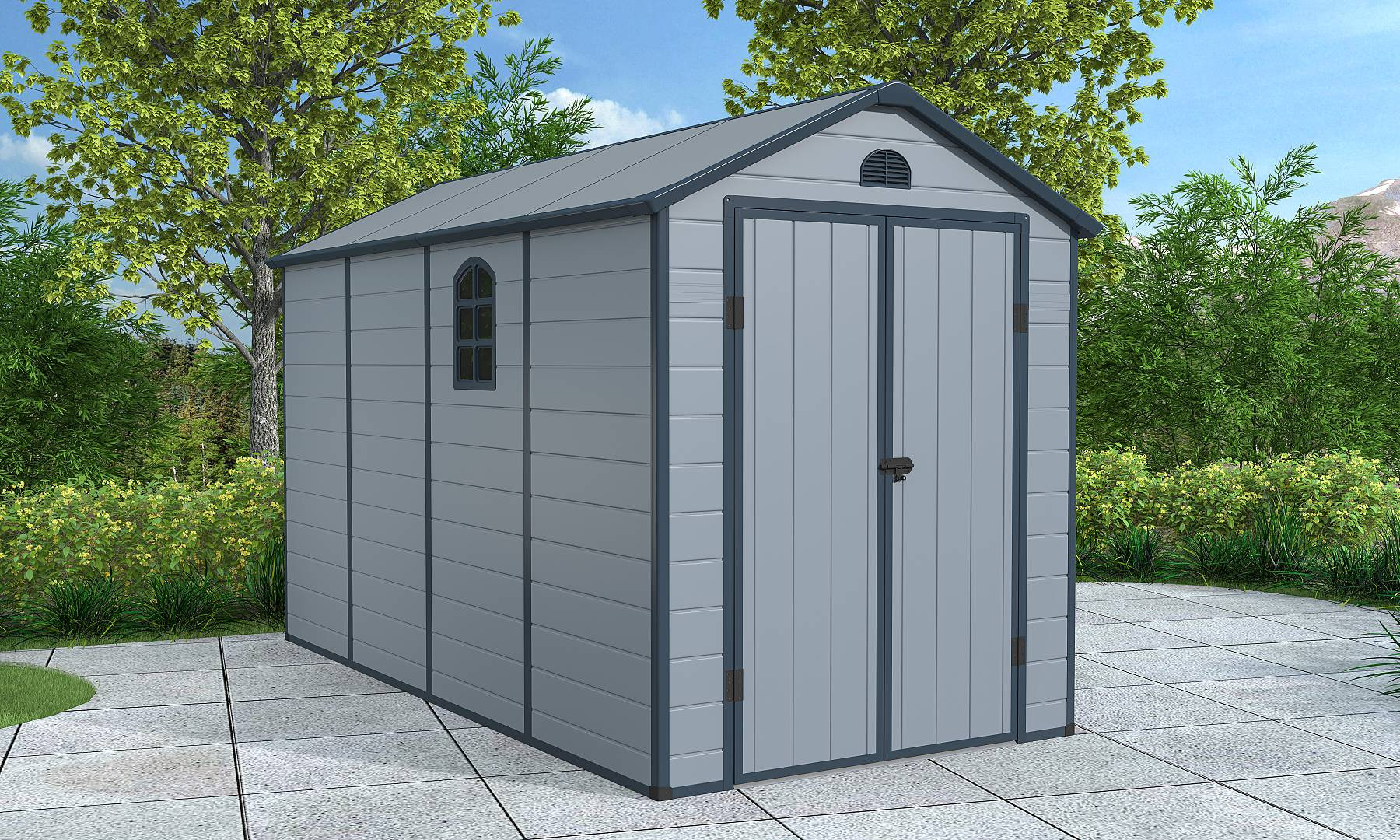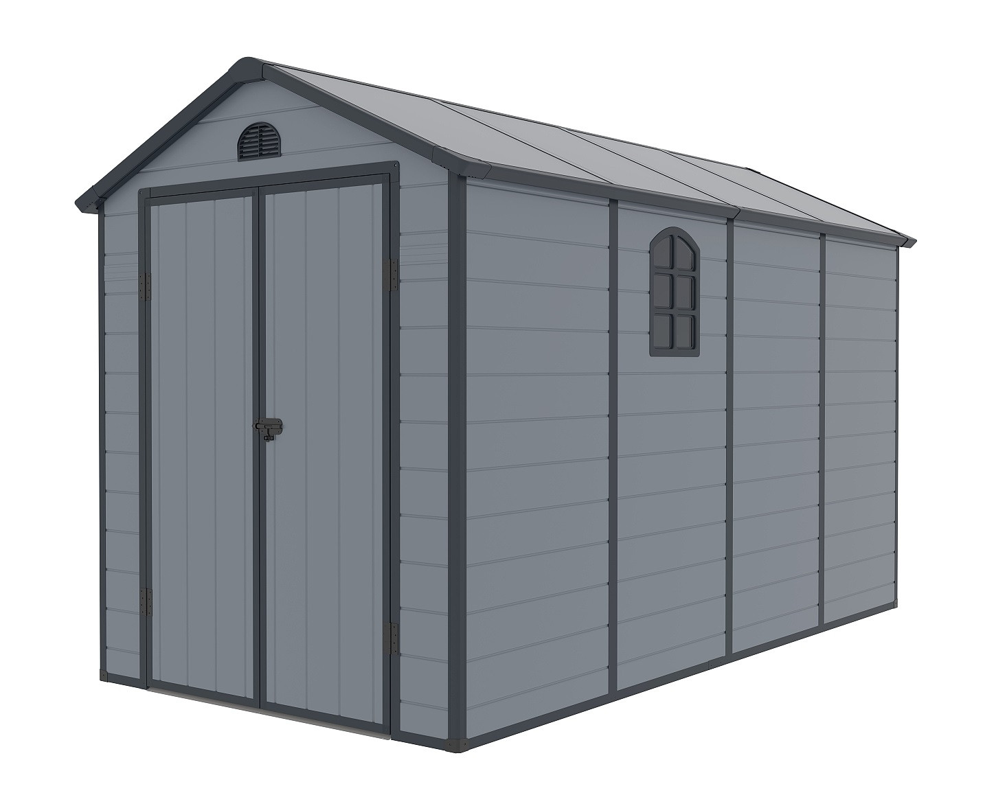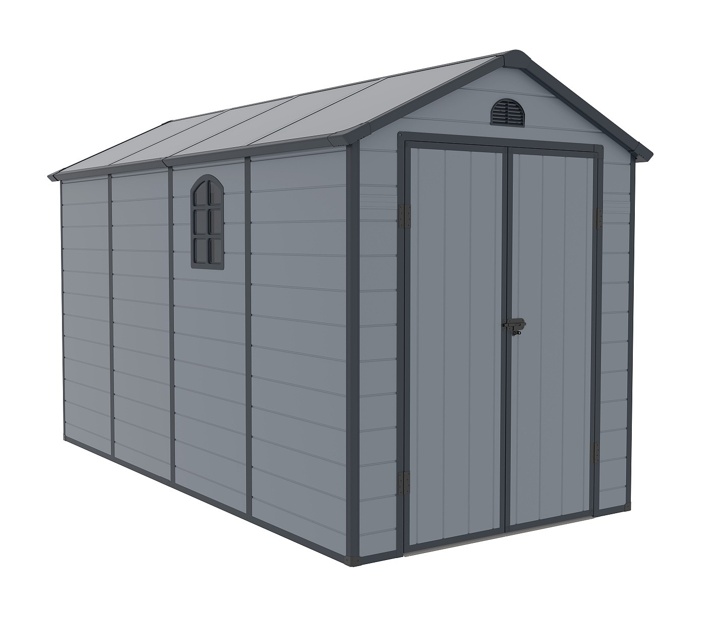 Az elegáns és érdekes kialakítású Longford 612 műanyag kerti ház egy gyakorlatilag karbantartásmentes kerti ház kerti szerszámok, kerékpárok, fűnyírók, medencetartozékok, fa stb. tárolására. Modern kialakításának és egyszerű összeszerelésének köszönhetően ez a ház egész évben praktikus és stílusos tárolóhelyet biztosít Önnek.