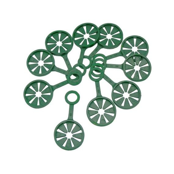 Műanyagból készült rugalmas rögzítőgyűrűk három növénytámasz egy ponton rögzítéséhez és egy sátorszerű szerkezet kialakításához. A növekedés során függőlegesen felnyúló növényekhez különösen alkalmasak. Bármilyen típusú növénykaróval használhatók, legyen az műanyag bevonatú horgonyzott acél vagy természetes bambusz.